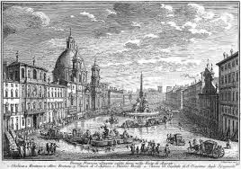 During centuries 18th and 19th, especially in the summer, the noble families enjoy themselves filling it with water and holding fake naval battle, but with authentic ships just like roman emperors used to do in ancients Naumachiae (naval stadiums). This was one of favorite pastimes of the people from Rome and surrounding areas. People habit continued flooding this square into 19th century, although the naval battles were no longer hold.