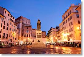 Here, in the age of Counter-Reformation took place public esecution: in the center of the square rise the Giordano Bruno's hooded statue, he philosopher was condemned by Inquisition to be burned alive for heresy in the 17th century. Since the late 19th century, when the statue was erected in this place, Campo De' Fiori has always been a simbolic meeting place for free thinkers.